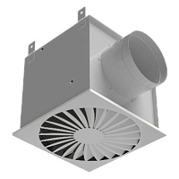 Конструктивно VKN-S/R-PB представляет собой потолочный вихревой диффузор с квадратной (VKN-S-PB) или круглой (VKN-R-PB) лицевой панелью и регулируемыми радиально расположенными поворотными направляющими лопатками.