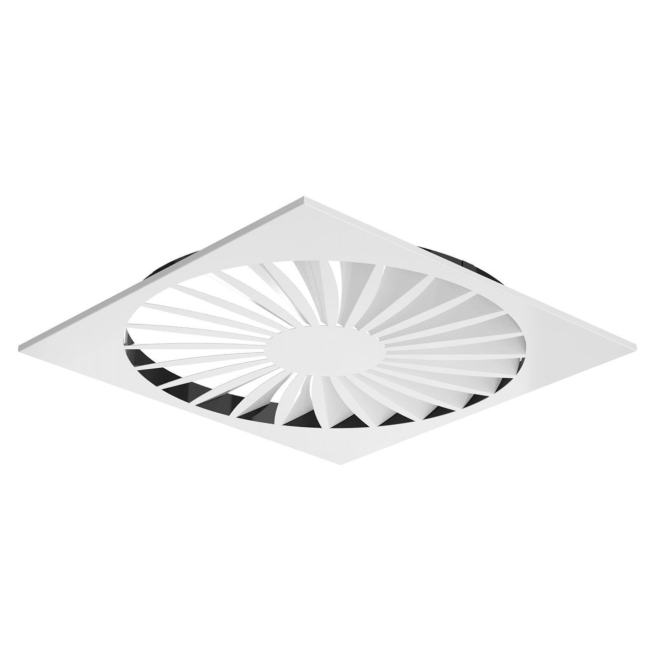 Конструкция диффузоров представляет собой панель квадратной (VKN-S) или круглой (VKN-R) формы с закручивающими лопатками с заданным углом и присоединительным патрубком круглого сечения на тыльной стороне диффузора.