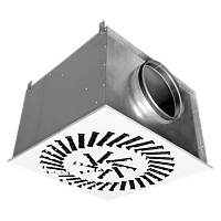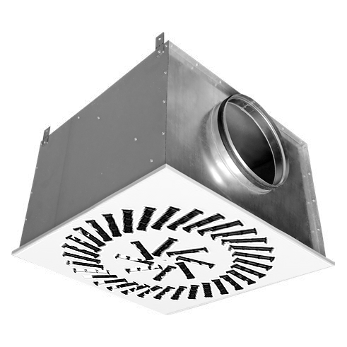 КСД имеет боковой или торцевой подвод и обеспечивает равномерное истечение воздуха из воздухораспределителя. Для изменения и регулирования расхода воздуха воздухораспределители оснащены регулятором расхода воздуха, установленным в подводящем патрубке КСД.