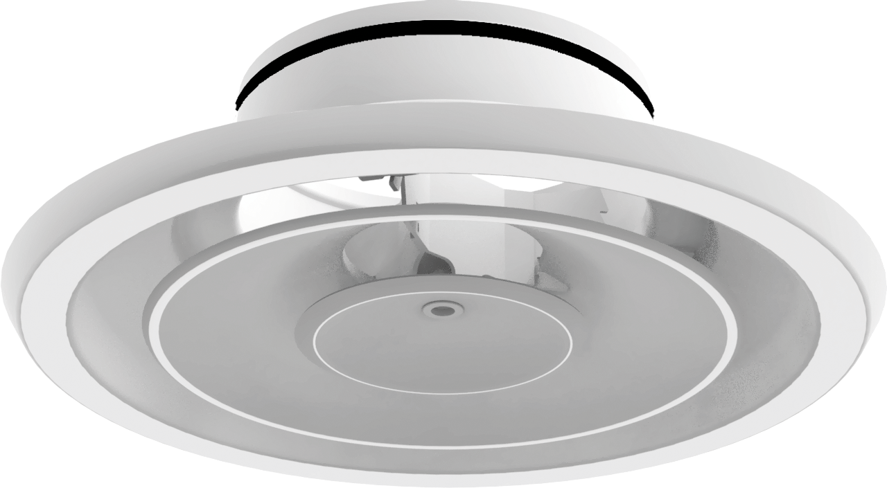 Круглый потолочный диффузор KNK используется в системе приточно-вытяжной вентиляции в помещениях различного назначения. Возможна комплектация камерой статического давления.